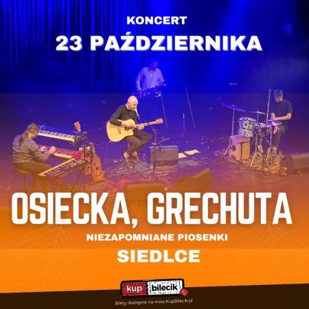 Zapraszamy na koncert poświęcony twórczości Agnieszki Osieckiej oraz Marka Grechuty. W programie znajdą się najwybitniejsze, najbardziej znane piosenki napisane przez Agnieszkę Osiecką: m.in. "Piosenka o okularnikach", "Niech żyje bal", "Kołysanka dla okruszka", "Kiedy mnie już nie będzie", "Co każdy chłopiec wiedzieć powinien oraz wybitne utwory wykonywane przez Marka Grechutę: "W dzikie wino zaplątani", "Niepewność", "Historia jednej podróży", "Korowód", "Świat w obłokach", "Dni których nie znamy" oraz wiele innych.