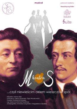 Nie znaliście Wieszczów od tej strony! Kto sfriendzonował Mickiewicza? Co, oprócz talentu, łączyło Słowackiego z Chopinem? Ile muz w życiu poety to przesada? Na wszystkie te pytania odpowiemy wierszem i piosenką w autorskim spektaklu muzycznym „M. kontra S.” , który - podobnie jak słynny “Hamilton” - przedstawi znane postaci historyczne w nowatorskiej, musicalowej odsłonie, i - tak jak „SIX” - odda mikrofon kobietom.